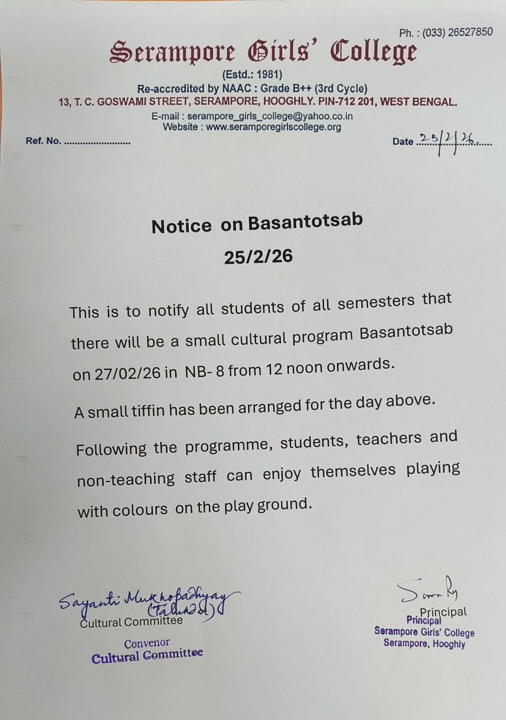 Established in 1981, Affiliated to the University of Calcutta