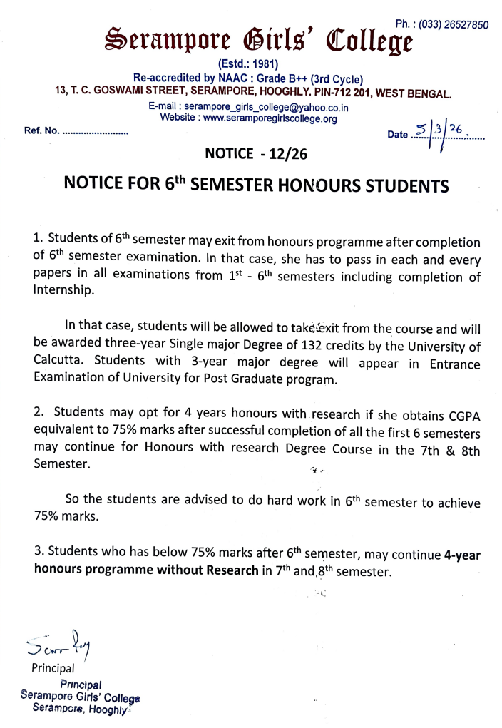 Notice for 6th semester honours students