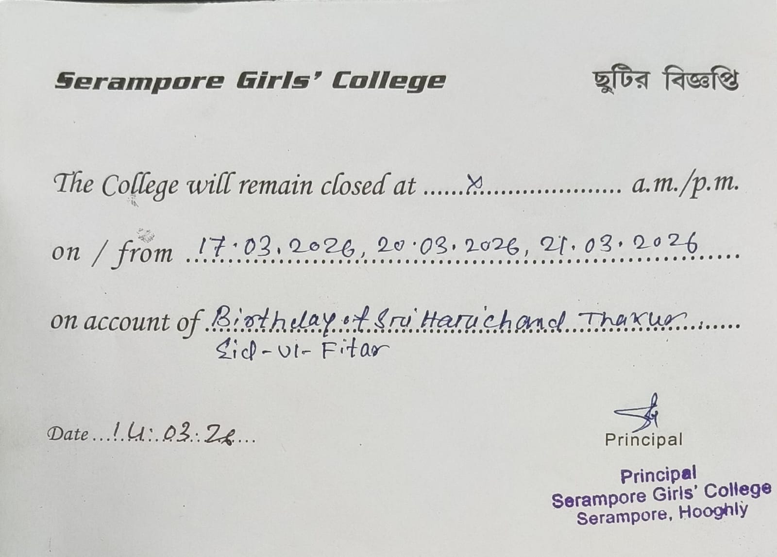 Date : 14-03-2026